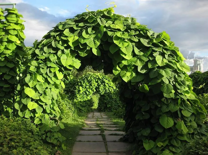 Кирказон крупнолистный. Это тип лианы с опадающими листьями, она дает плотный и хороший зеленый покров. Крупные листья растения образуют тень и спасают от жаркого солнца.