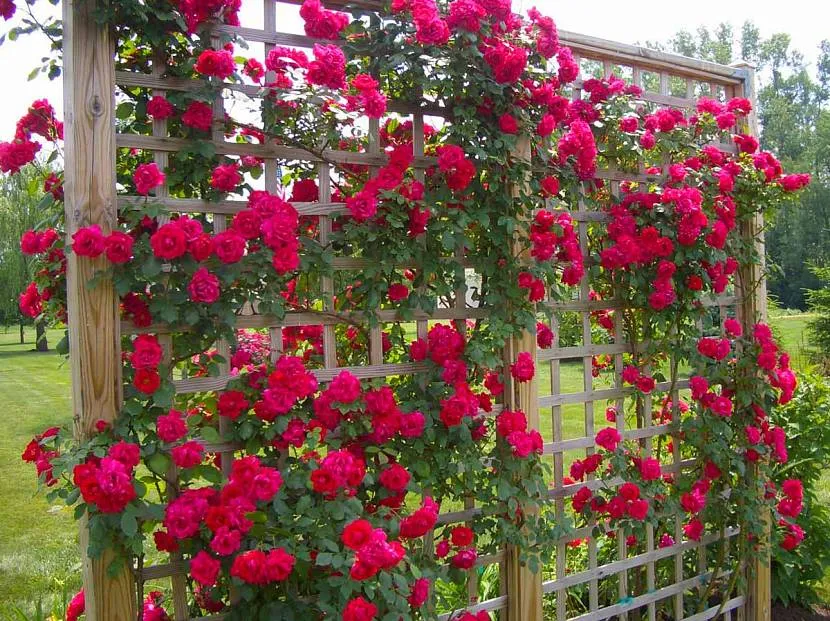 Плетущиеся розы. Цветы этого растения создают в саду неповторимую атмосферу романтики и спокойствия. Своды в виде арок выглядят особенно хорошо в таком оформлении. Лучше высаживать розовые кусты на южной стороне.