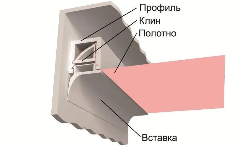 Имеется в виду специальная лента, которая закрывает пространство щели и маскирует его. Она может быть заказана одновременно с натяжным полотном или куплена отдельно.
