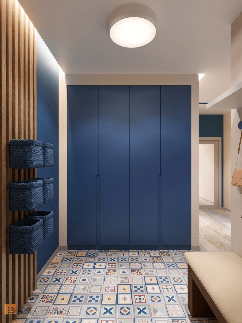 При оформлении коридора можно брать синюю гамму. Для небольшого помещения подойдет прозрачный нежно-голубой. Насыщенные оттенки (ультрамарин, полуночный, кобальтовый) эффектно смотрятся в качестве единичных акцентов: