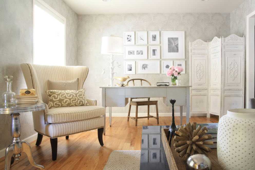 Сочетание французской изысканности и деревенской простоты присуще провансовским интерьерам. Здесь удачно будут смотреться ширмы из натурального дерева светлых, даже слегка выцветших тонов с элементами состаривания (потертостями, трещинками). Также приветствуются текстильные изделия с мелкими цветочными мотивами, свойственными стилю прованс.
