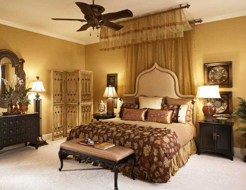 В помещении взрослой спальни ширма может играть роль перегородки, отделяющей ложе от места для переодевания, а также служить достойным украшением интерьера. В любом случае лучше приобрести конструкцию, которая позволит развесить одежду, например, ширму с крючками, вешалками. Очень хорошо, если хотя бы одна створка будет с зеркалом. Иногда красивую ширму устанавливают за изголовьем, в качестве декоративного элемента.