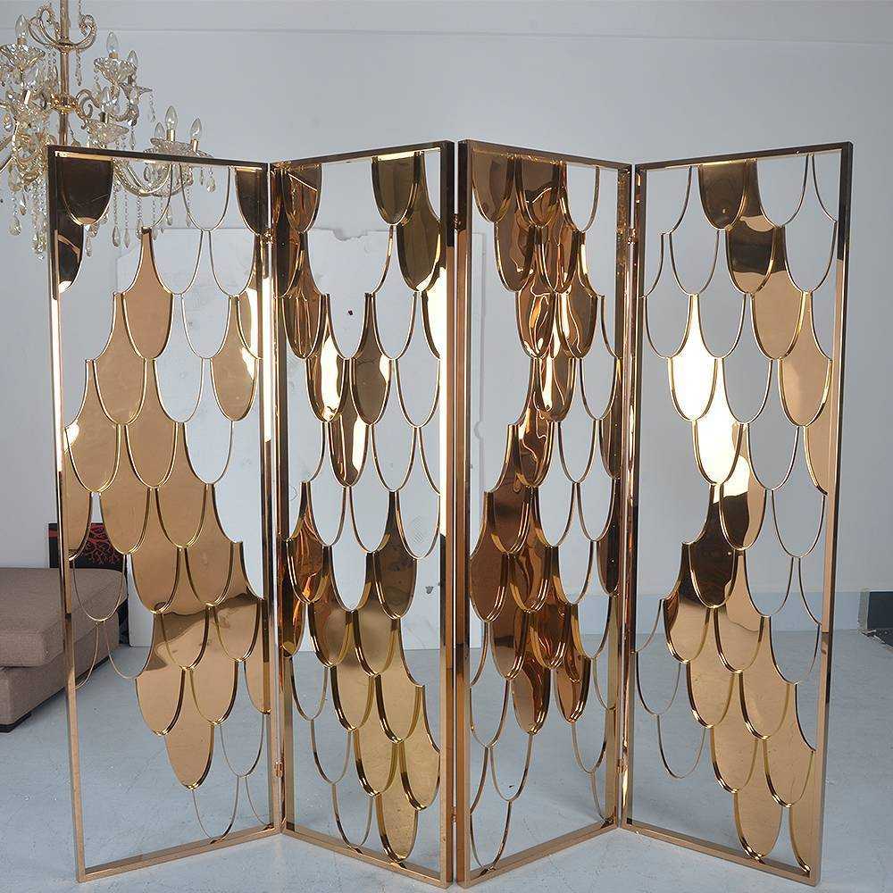 Авангардная раскладная композиция из золотых «листьев», выполняющая роль символической перегородки для визуального зонирования