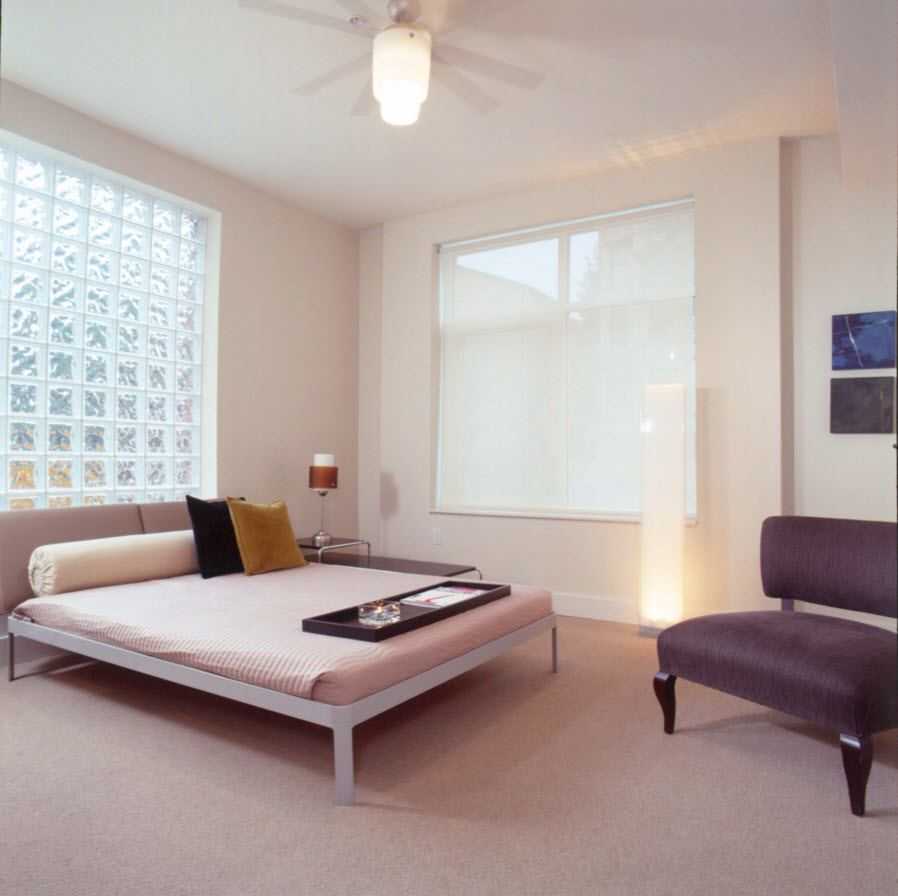 Необычное использование стеклоблоков встречается и в спальной зоне. Окна из этого материала могут защитить ваше пространство от посторонних взглядов, но в то же время наполнить комнату мягким солнечным светом.