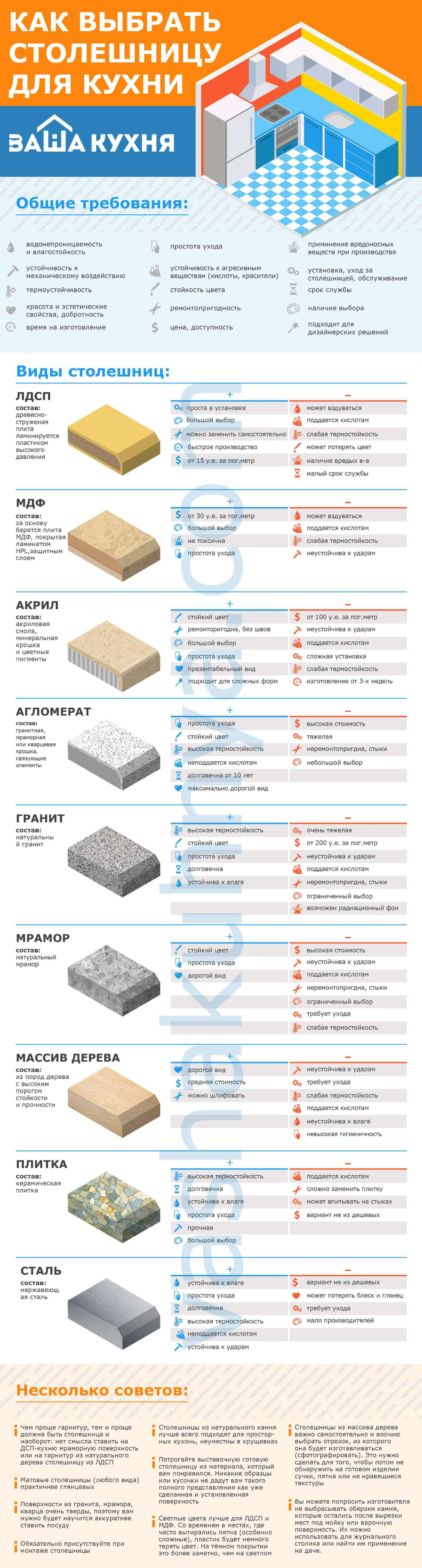 Больше информации о том, какой материал лучше для кухни, в видео:
