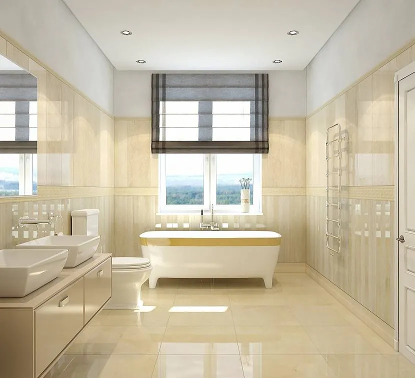 Плитка не портится от воды, следовательно – ее применение более чем уместно в ванной комнате