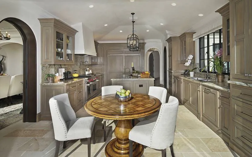 Для маленьких детей на просторной кухне тоже можно выделить индивидуальное пространство для столика или даже коврика для игр. Тогда, даже если мама сильно занята приготовлением трапезы, ребенок будет под присмотром.