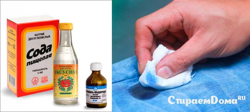 Первый способ устранения пятен заключается в том, что место загрязнения засыпается большим количеством пищевой соды. Поверх сухого порошка необходимо налить обычный столовый уксус. Наверняка многим известно, что сода совместно с уксусом дает бурную шипучую реакцию. Именно это и необходимо для того, чтобы зеленые пятна отошли. Необходимо оставить шипучую смесь на несколько минут, после чего постирать вещь в обычном режиме. Данный способ известен как один из высокоэффективных и позволяет отстирать зеленку с белой и цветной одежды.