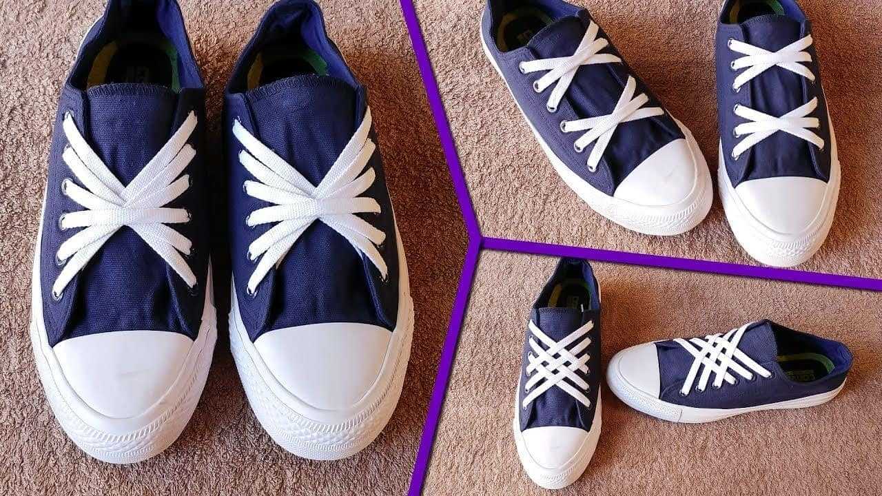 Как видите, завязать красиво шнурки на кедах по этой схеме достаточно легко. Главное, понять принцип – каждый «крест» расположен в условном квадрате, образованном между 4-мя отверстиями.