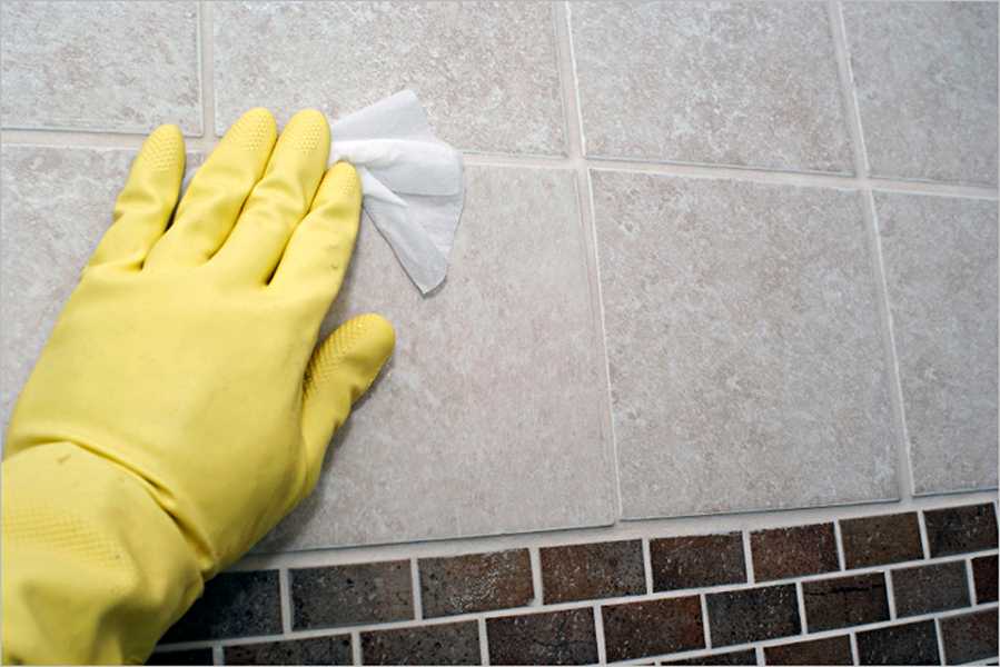- после очищения кафельную плитку вытирают насухо.