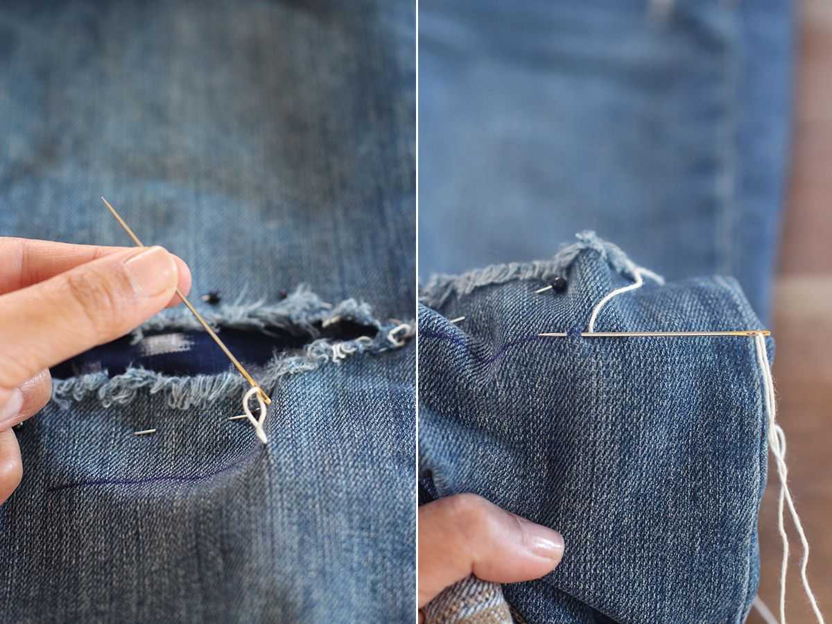 Именно по этой причине целесообразно ремонтировать джинсы с лицевой поверхности.