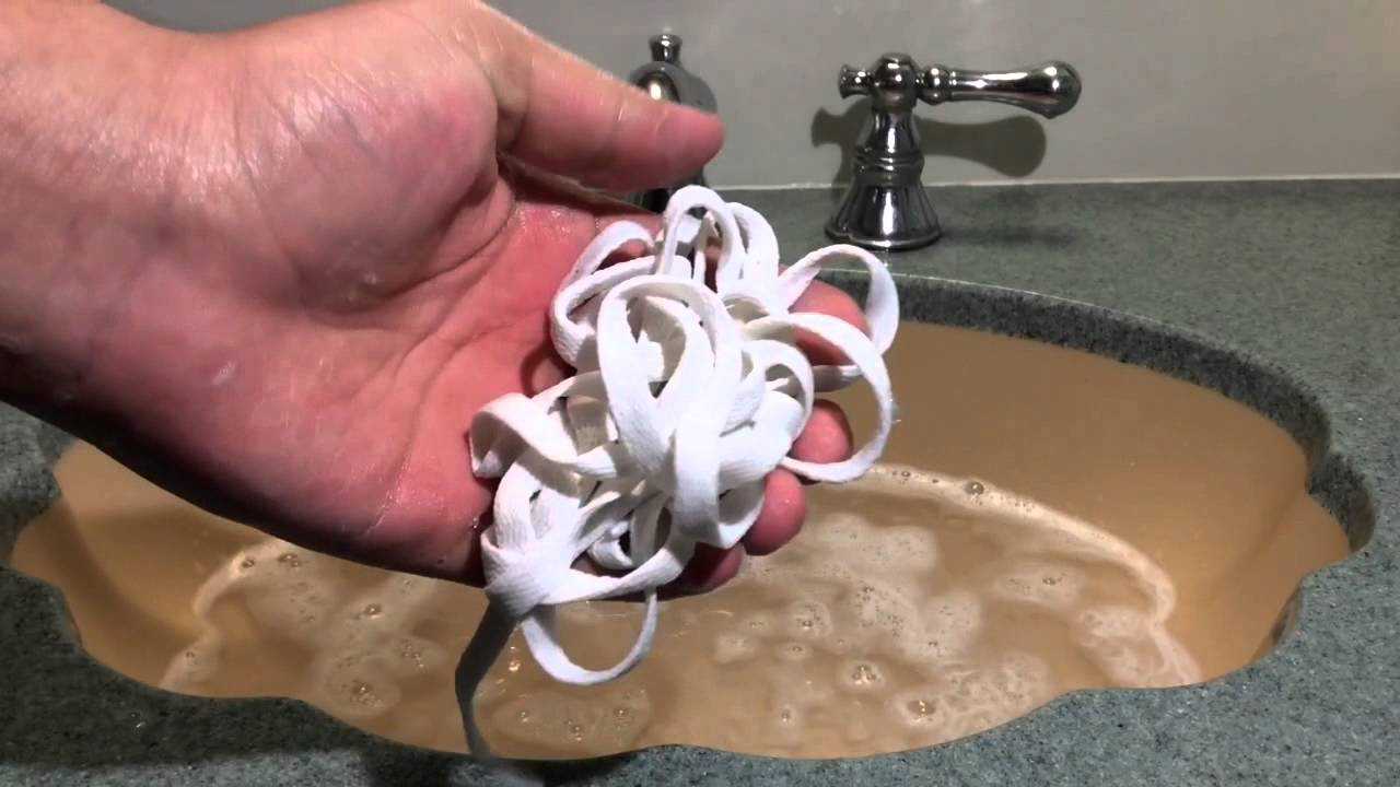 - Замочить шнурки в данном растворе и оставить их на ночь.