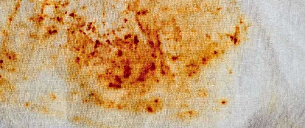 - Не пытайтесь избавиться от ржавчины механически. Не нужно пытаться оттереть, отскоблить или еще каким-то образом избавиться от пятна физически. Так вы только испортите обрабатываемую ткань, но не очистите пятно.