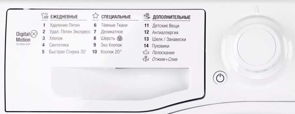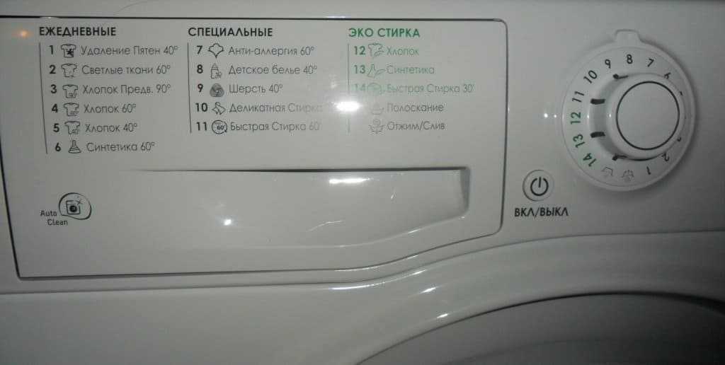 Во многих моделях стиралок марки Indesit, чтобы начать работу придется повернуть специальный тумблер, а выбирая нужную программу – нажать соответствующую кнопку.