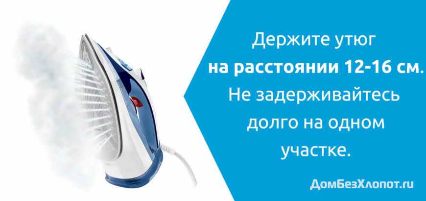 - Положите или повесьте изделие так, чтобы вам удобнее было отпаривать его.