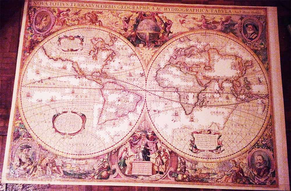 В этом случаи остается только накрыть сверху собранный пазл прочным материалом (например, еще одним листом ДВП), плотно прижать их друг к другу и быстрым движением перевернуть всю конструкцию лицевой стороной вниз. Если пазл большой, то для пущей надежности можно скрепить листы ДВП скотчем, либо канцелярскими зажимами.