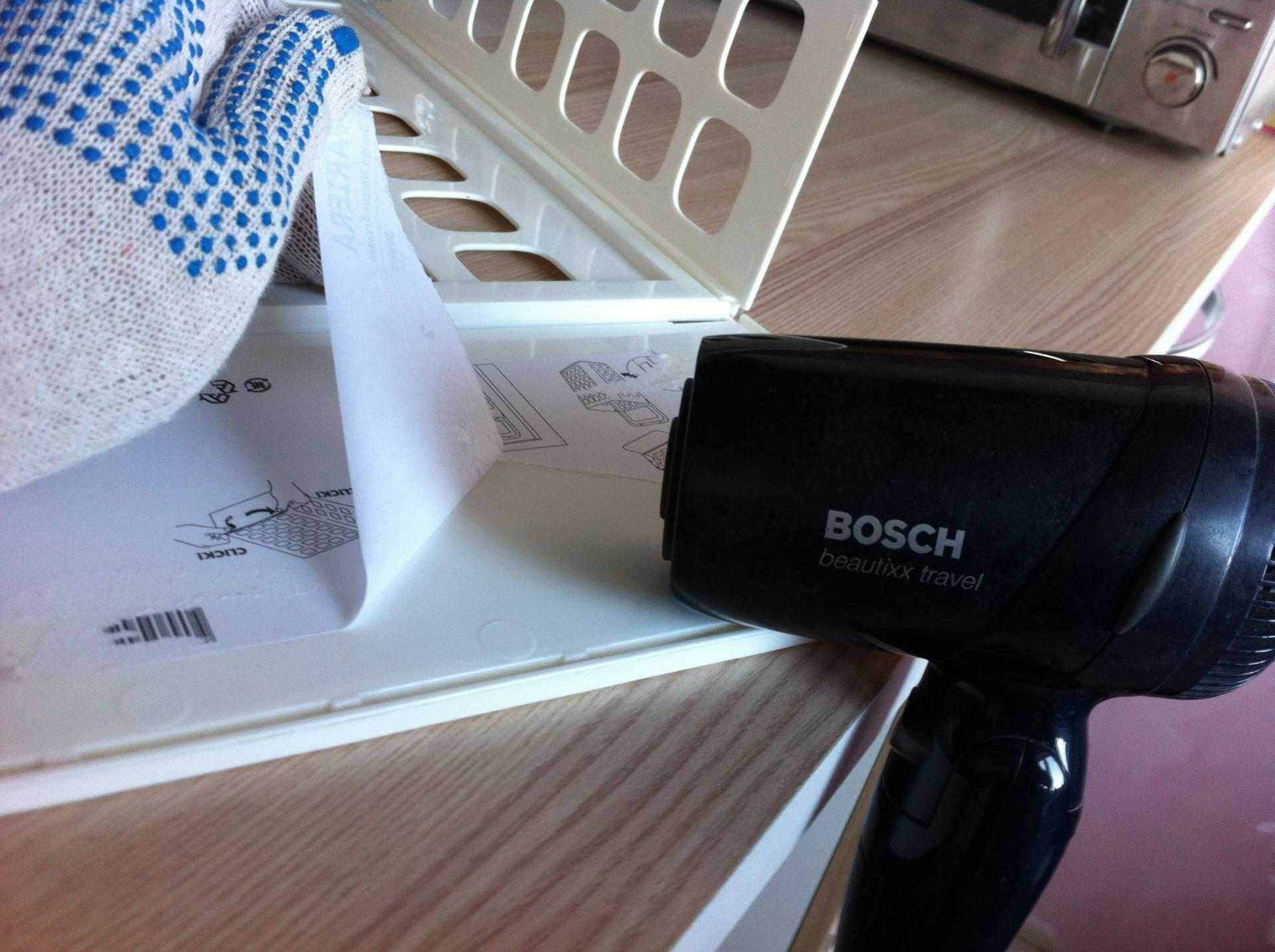 - несколько минут аккуратно прогреваем наклейку при помощи сушильной машины, фена или утюга;