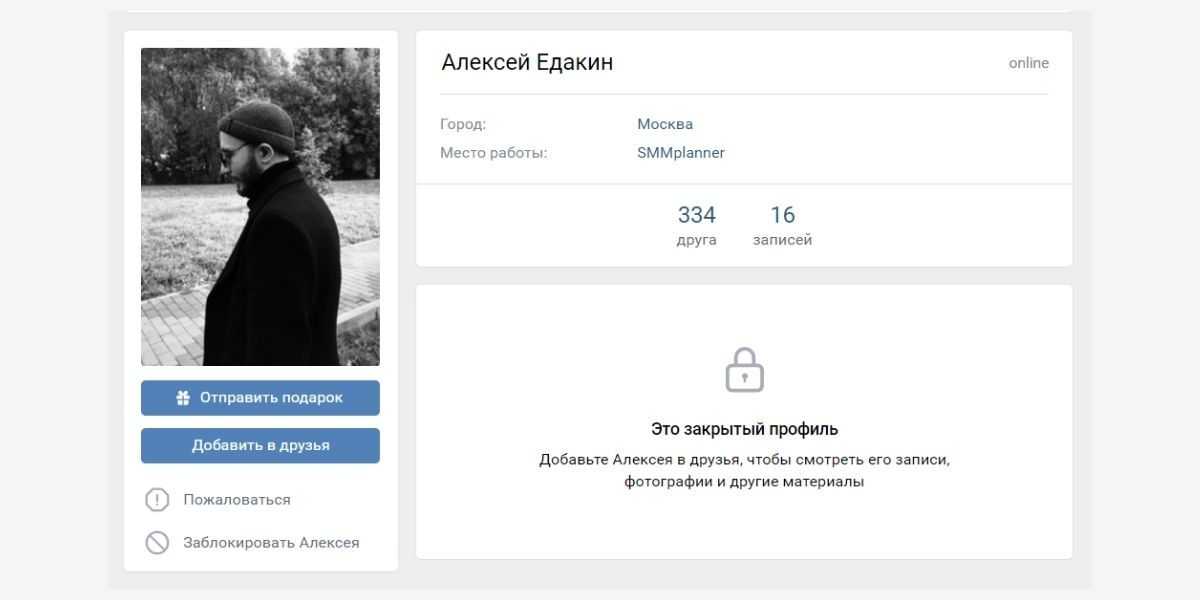 Представьте, что вы нашли в ВК своего давнего друга или просто симпатичного вам человека. С предвкушением общения вы заходите к нему на страничку, но следующая ваша эмоция — это недоумение. Вы видите, что профиль человека закрыт и чтобы с ним связаться нужно попасть в список его друзей.