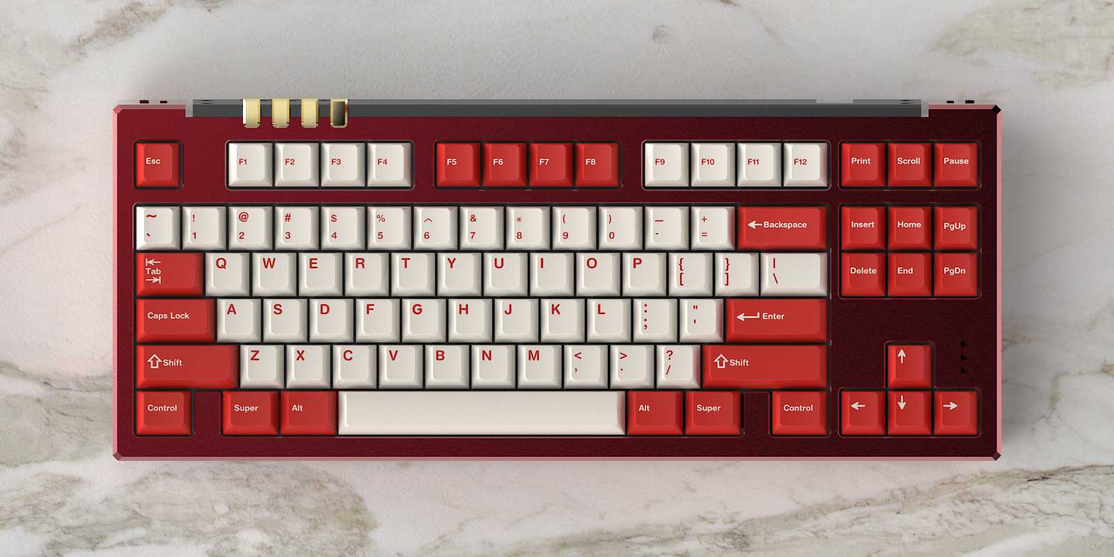 Еще грузы изготавливают из алюминия — такие изделия используют в качестве дизайнерской фишки: основа клавиатуры из алюминия может быть покрашена в один цвет, а груз — в другой. Так, например, устроена Pixelspace Studio X KBDfans Endless-80.