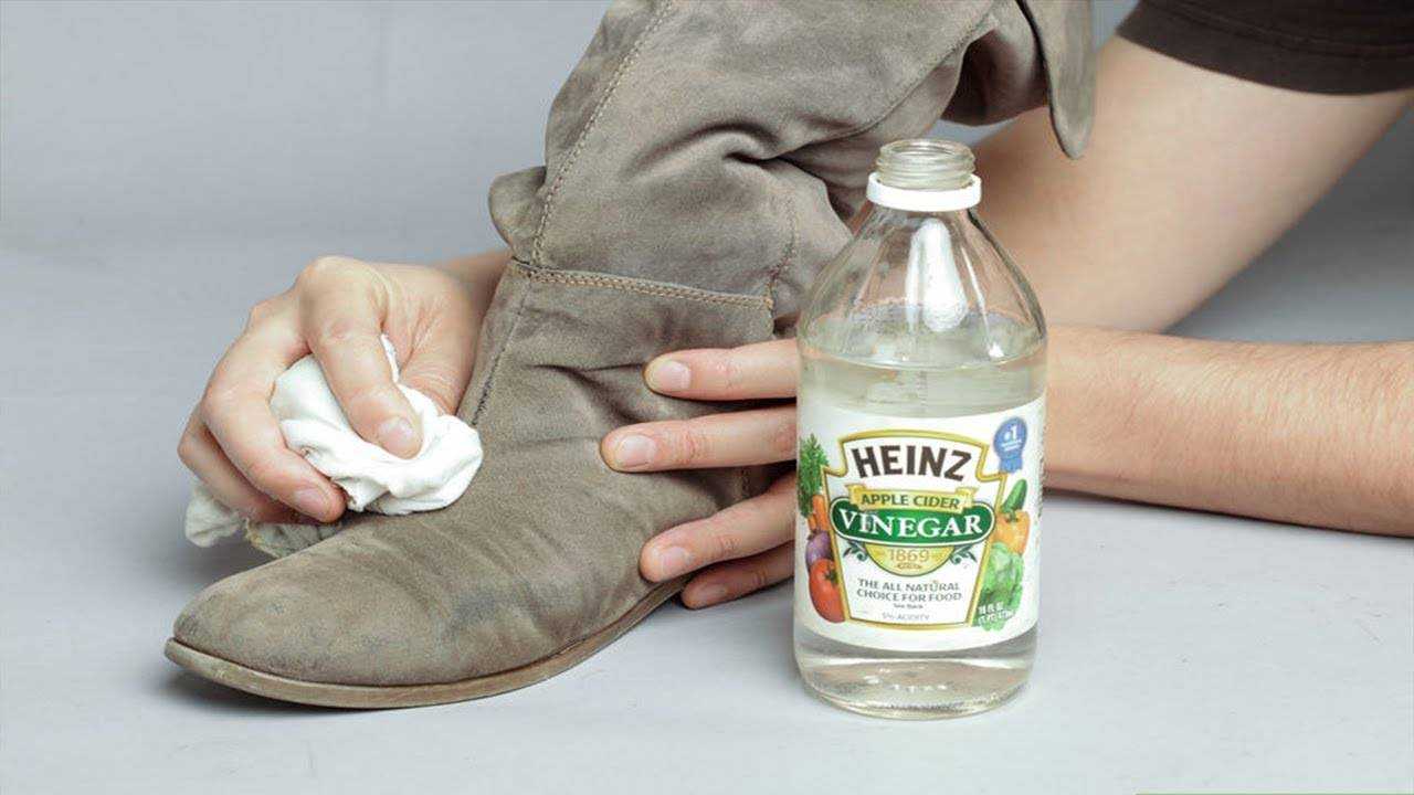 Для удаления пятен от красного вина с замши используют столовый уксус. Алгоритм действий:
