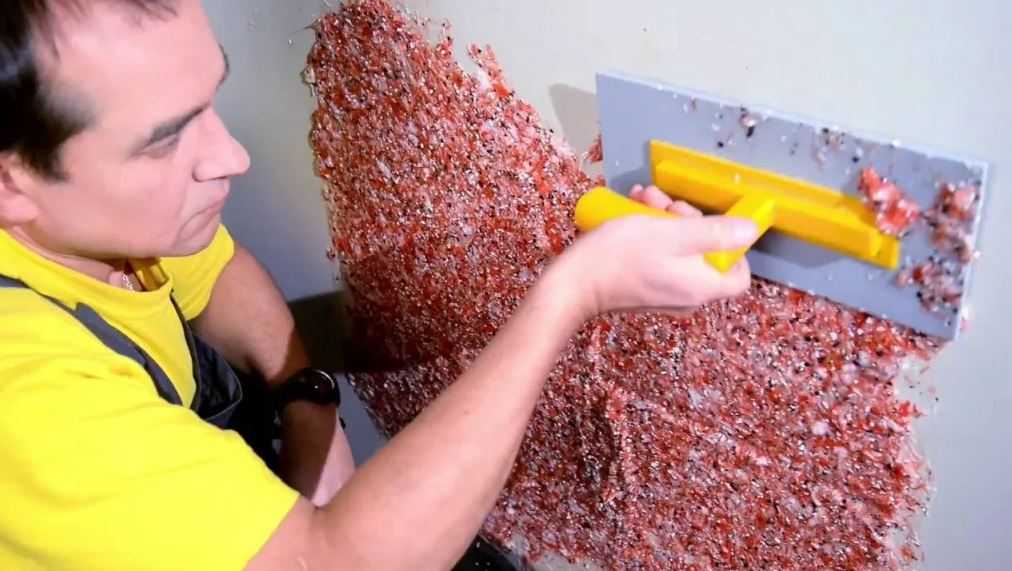 Такое покрытие представляет собой смесь на специальном составе с содержанием клея различных наполнителей: волокон целлюлозы, кварцевой крошки и др. Этот универсальный отделочный материал, нанесённый на стену, после высыхания образует достаточно прочное покрытие, которое впоследствии можно легко снять шпателем, предварительно размочив поверхность водой.