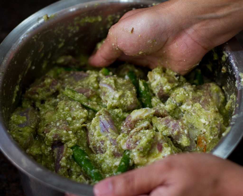 Надо смешать выбранные специи, добавить чеснок, перец, соль и растительное масло. Готовым маринадом намазать кусок баранины и поставить его в холодильник на 3–4 часа. После этого мясо можно жарить.