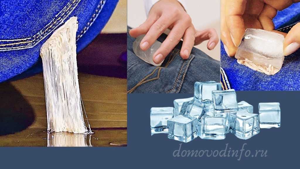 Низкие температуры приводят к тому, что резина становится хрупкой и быстро трескается. По кусочкам удалить ее гораздо проще, чем одним большим пластом. Самый простой способ, как полностью вывести жевательную резинку с джинсов – использовать морозильную камеру: