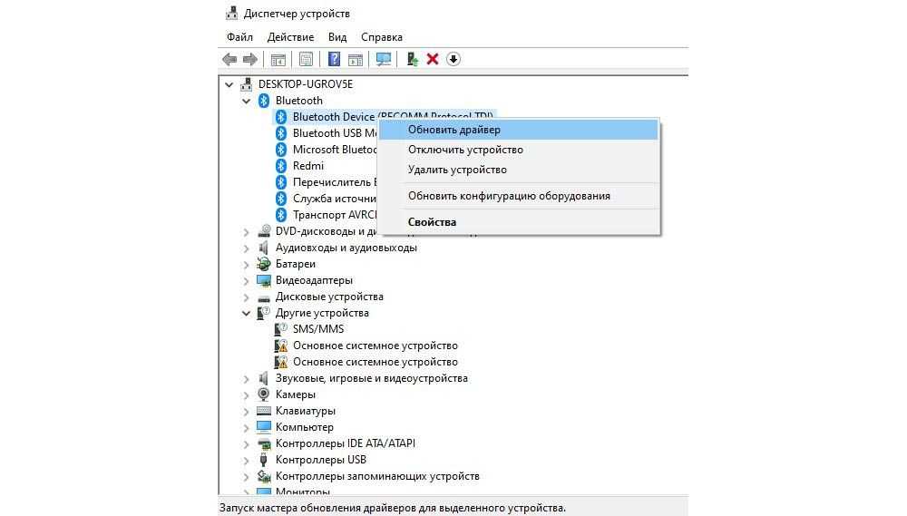 Если такого значка нет, то нужно нажать на элементе правой кнопкой мыши и выбрать «Обновить драйвера».