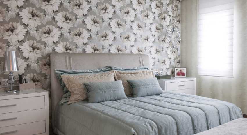 Серые обои с цветами в спальне создадут впечатление, что вы находитесь в благоухающем саду, а рядом с вами цветочные луга невероятной красоты.