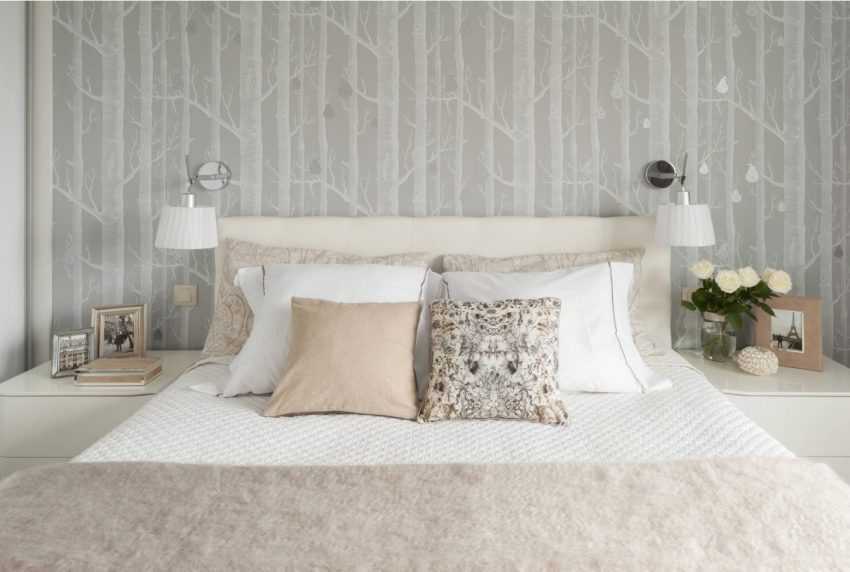 Серый цвет обоев в разных стилях интерьера спальни