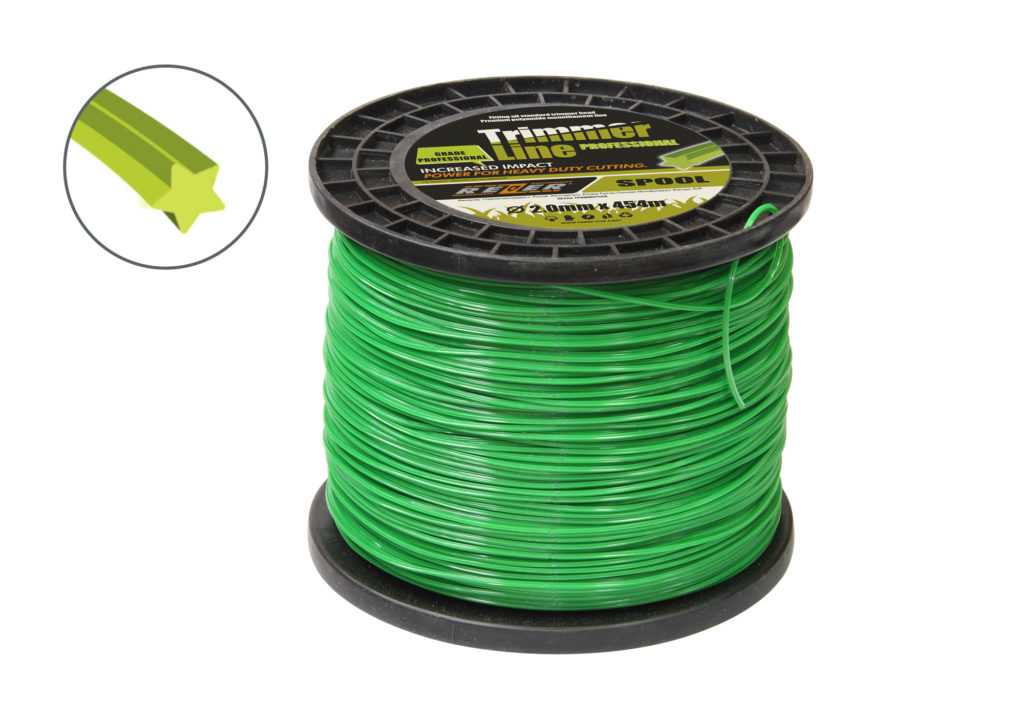 - Витой квадрат или звездочка могут похвастать наибольшей скоростью скашивания, причем даже засохшая или твердая трава не станут помехой – острые грани запросто расправятся с нею. Уровень шума сравнительно невысок, а вот стоимость у такой лески самая высокая. Это отпугивает некоторых потенциальных покупателей. На самом деле «звездочка» вполне оправдывает свою стоимость при скашивании жесткой травы, экономя немало времени пользователю.