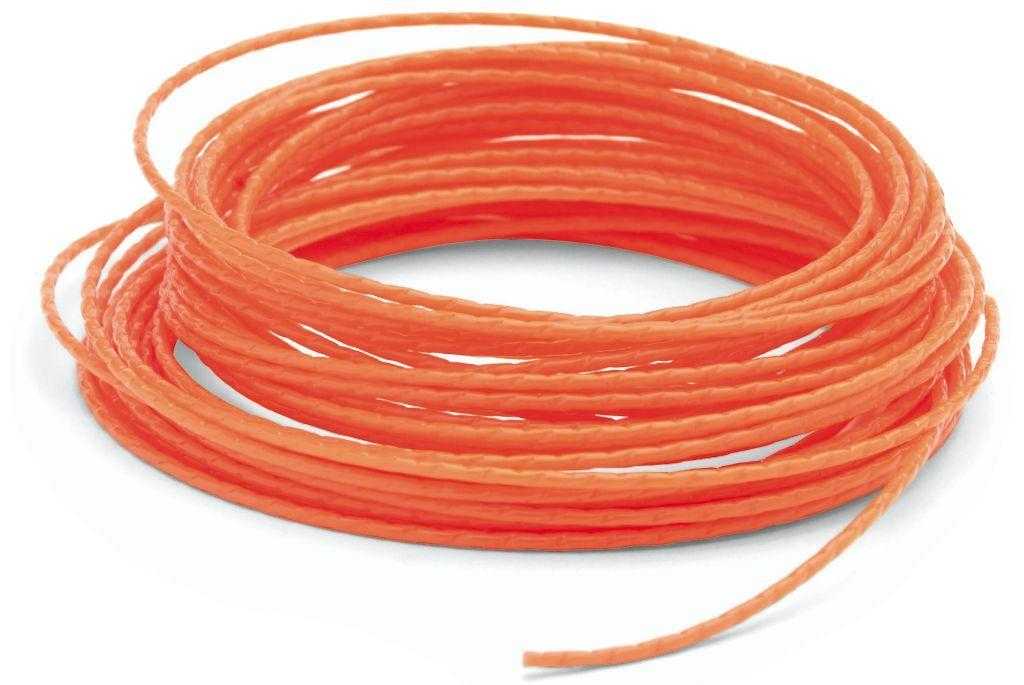 Леска представляет собой нить, которая изготовлена из нейлона. Скашивание травы происходит при помощи 2 кончиков лески, вращающихся с большой скоростью. При этом, чем выше скорость вращения, тем выше эффективность инструмента.