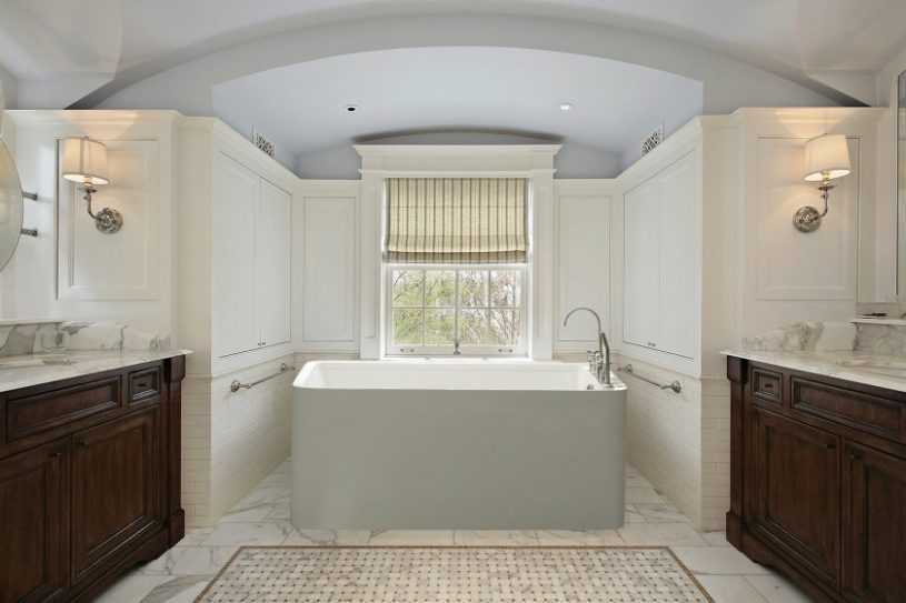 В квадратных ванных с площадью до шести кв. метров из всей необходимой техники приходится отказаться от ванн круглой формы.
