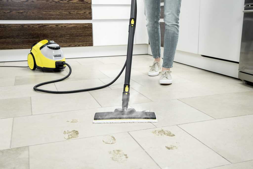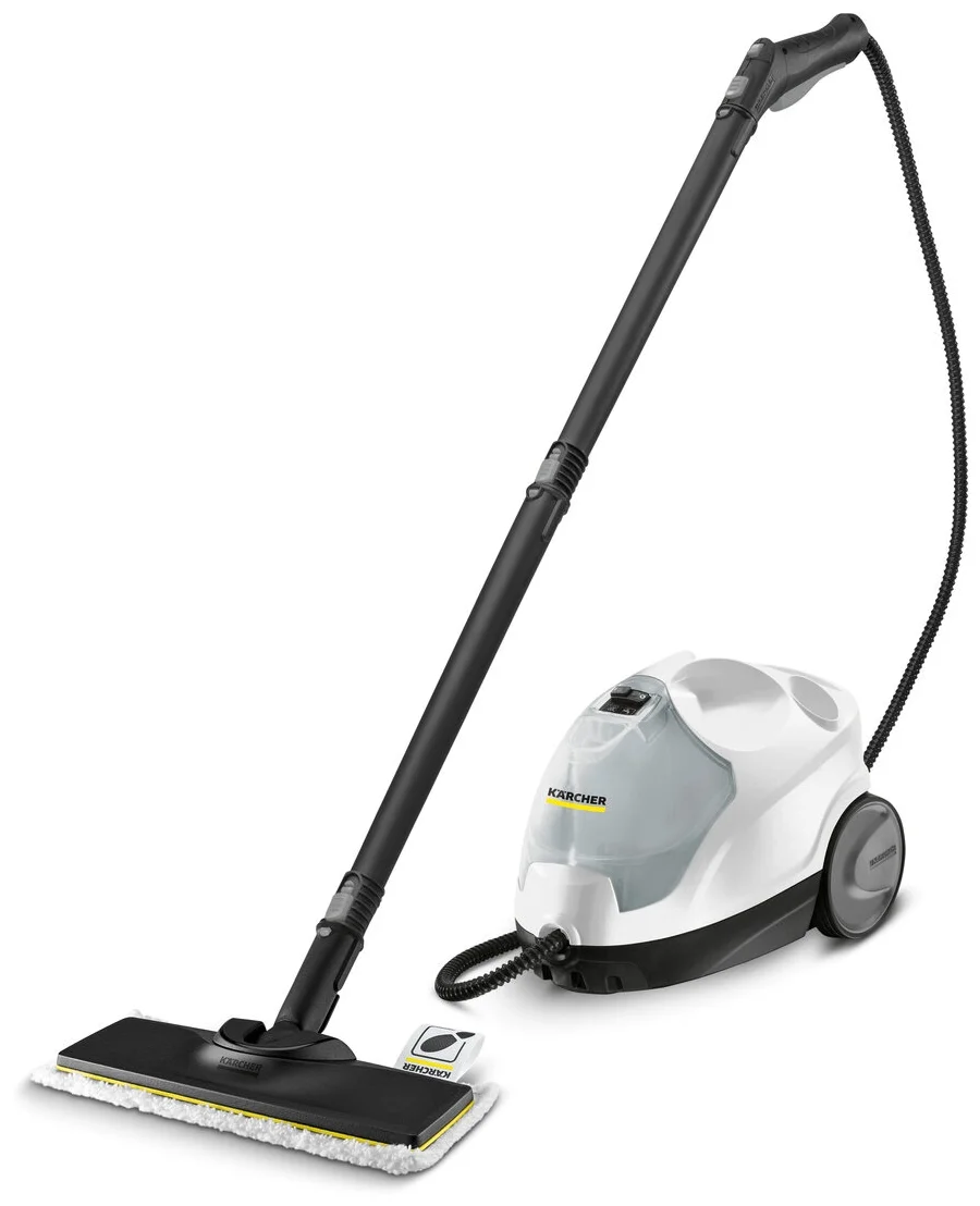 Karcher SC 3Данная напольная модель обладает мощностью 1,9 Вт. Благодаря своей функциональности он может убирать любые поверхности. Для удобства существует регулятор пара, чтобы выбрать подходящий напор для разных материалов. Контейнер для воды можно снимать. Интересно! В комплекте есть несколько насадок, оснащенных обтяжками их махровой ткани, что позволяет быстро вытирать отпаренную грязь. Плюсы: