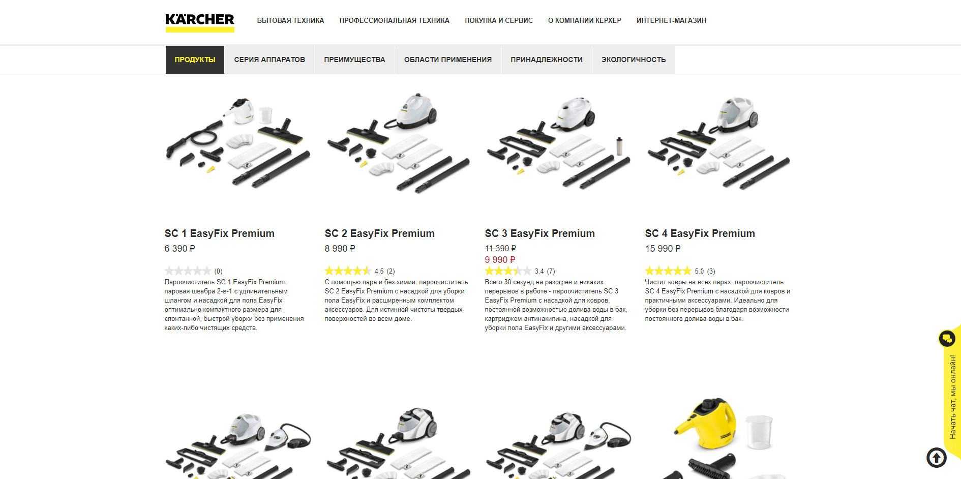 Высокопроизводительный прибор, обладающий внушительным перечнем необходимых для проведения качественной очистки функций. Доступная модель SC 1 EasyFix Premium, укомплектованная универсальными насадками для глубокой очистки напольных покрытий и различных поверхностей.