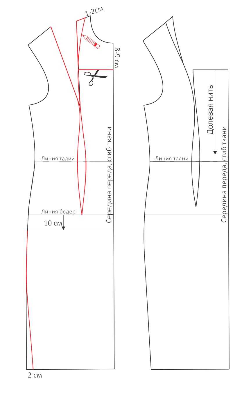 Выкройка платья-футляр — моделирование переда