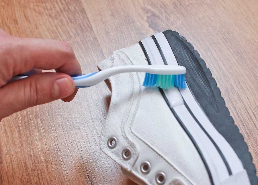 Сухая чистка выполняется при помощи зубной пасты. Для этого натираем кеды пастой, нанесенной на зубную щетку, и убираем их на один час. После поверхность обрабатывается влажной губкой, для того чтобы удалить излишки пасты. Это простой и дешевый способ, так как зубную пасту можно использовать самых дешевых марок. Также сухая чистка подразумевает удаление пыли и грязи с подошвы.
