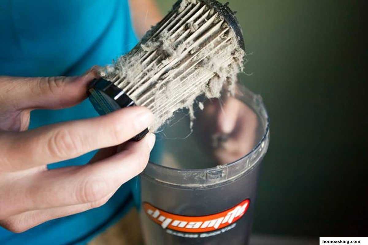 Чистка фильтра зависит от его вида: мешок необходимо заменить, в аквафильтре поменять воду и промыть емкость, НЕРА – промыть теплой водой и просушить.
