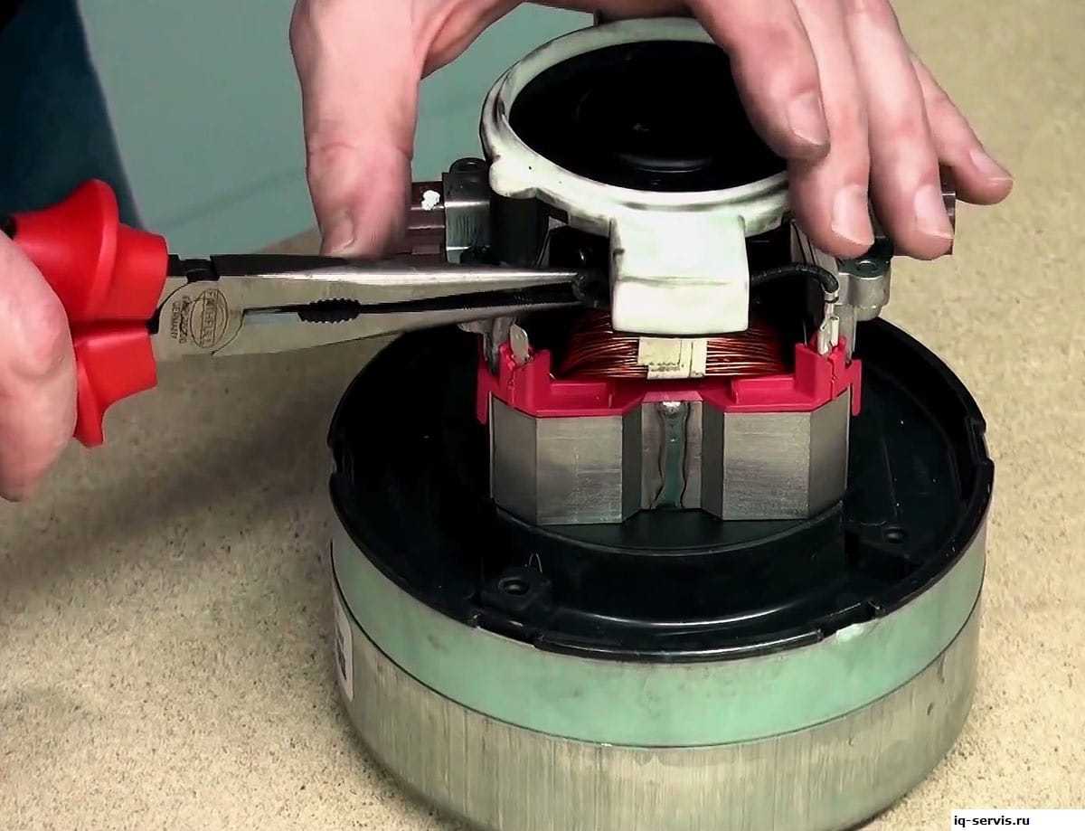 Если очистка мусоросборника, шланга и фильтров не помогла, и по-прежнему гудит мотор пылесоса, можно попытаться выполнить ремонт двигателя. Для этого нужно: