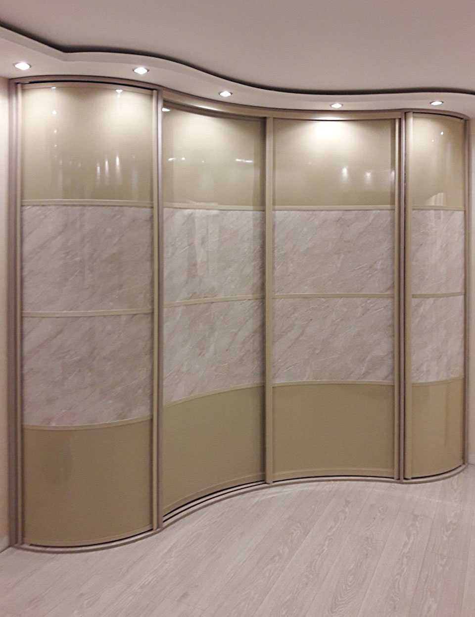 Радиусный современный шкаф купе своими руками сделать гораздо проще, чем искать в магазине подходящую по размерам модель или оформлять заказ у опытного столяра. Всю планировку вы можете рассчитать самостоятельно, исходя из того, в каком конкретном месте будет стоять изделие.