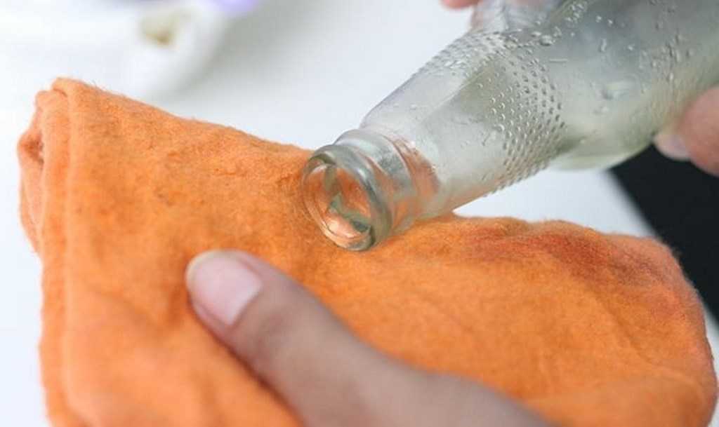 Чтобы защитить кожу рук от пересыхания и раздражения при использовании этого метода, лучше надеть плотные перчатки. Медицинский спирт наносится на марлю или тряпку, а затем протираются загрязнения