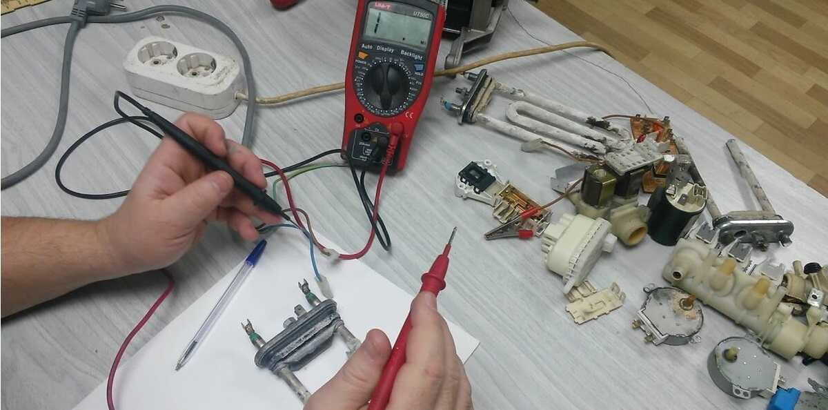 Еще одна причина, по которой стиралка Индезит не может начать набор воды в бак – неисправный ТЭН. Если при осмотре нагревателя вы обнаружите огромный слой накипи, а также мультиметр укажет на поломку, придется заменить элемент. Подробная инструкция к действиям: