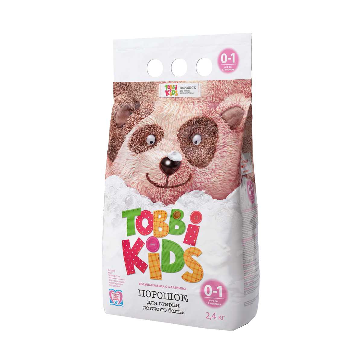 Порошок Tobbi Kids тоже произведен на основе мыла и соды. Он является довольно популярным у большинства пап и мам, так как отлично справляется со своей задачей. Средство подразделяется на подтипы, которые зависят от возраста крохи. Оно изготовлено в России. Производители уверяют, что порошок полностью разлагается в окружающей среде. Кроме того, он не содержит ПАВ и других вредных веществ.