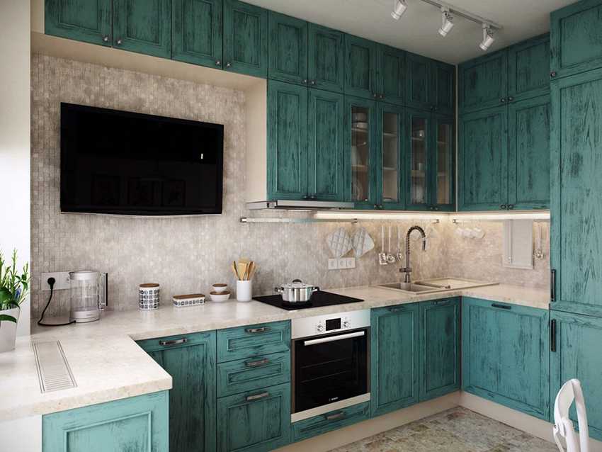 В кухне со средней площадью от 10 до 15 м² свободного пространства уже значительно больше, поэтому вполне допустимо установить экран с большей диагональю. Подойдёт как телевизор 17 дюймов, так и более широкоформатные экраны – до 25″