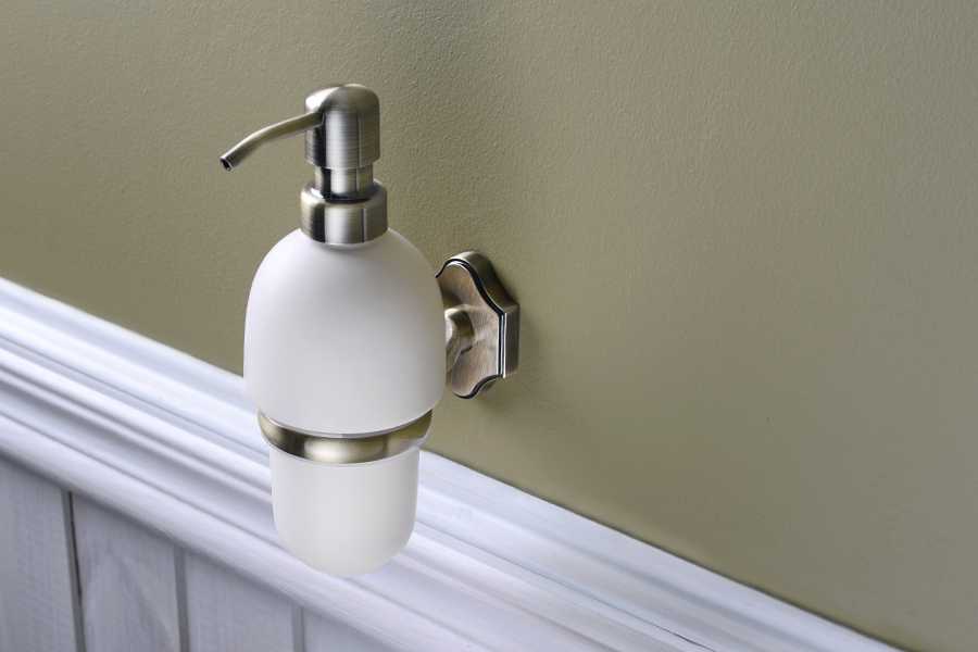 Домашнее жидкое мыло для рук разливается по флаконам с дозаторами, которые относятся в основном к настольным видам. Кроме этого бывают настенные и сенсорные диспенсеры.