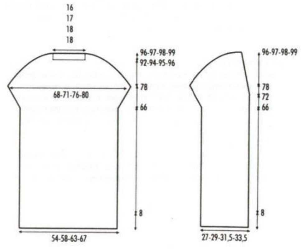 Рисуется еще один прямоугольник поменьше. От нижнего правого угла по прямой вниз чертится линия примерно 20 см. По намеченным линиям вырезается изделие. Большой прямоугольник складывается пополам и делается симметричное отверстие для обеих рук. Далее детали нужно сшить, швы обработать и отутюжить. Начинающей швее для этого понадобится примерно 6-8 часов, а мастер справляется за 2 часа времени.