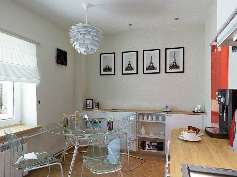 Идеальные полки для маленькой кухниИсточник st.hzcdn.com Прозрачная обеденная группа на кухнеИсточник koffkindom.ru
