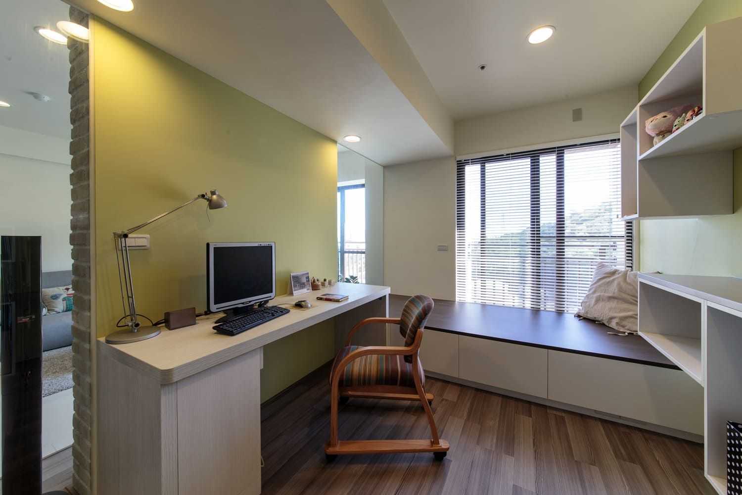 Интерьер спальни и рабочего кабинета за стеклом