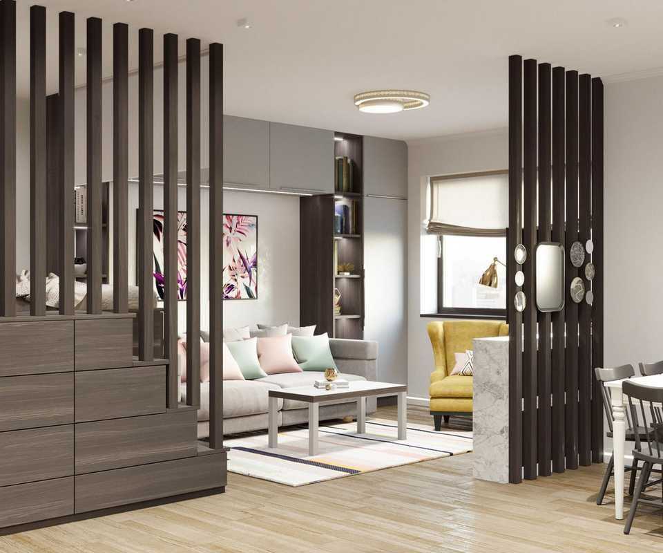 Гостиная и спальня за реечными перегородками