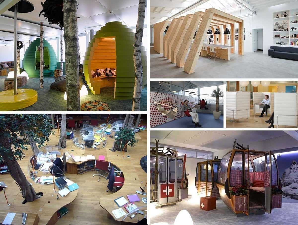 Все это выглядит как строгая обстановка или «деловой беспорядок», могут присутствовать комнатные растения, декоративные фонтанчики, настольные игры. Освещение должно быть мягким, расслабляющим. Звукоизоляция помещения также желательна.